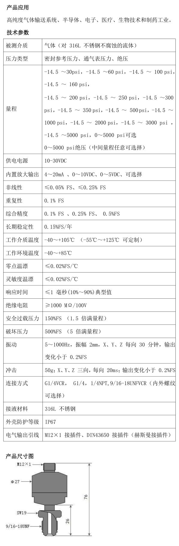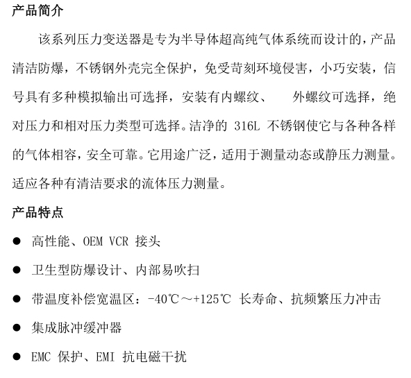 K.40100M超高纯压力变送器