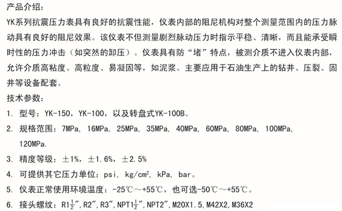 石油抗震压力表